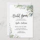 Grüne eucalyptus Brautdusche Einladung. Dieses wunderschöne Design mit eleganten Eukalyptus-Blätter vor einem sanften, neutralen Hintergrund macht es zur perfekten Wahl für ein botanisches Brautparty. Das Design besticht durch einen Blumenstrauß mit Aquarellgrün, Eukalyptus, der perfekt ist, um die Freude und Begeisterung der kommenden Neuheiten mit Familie und Freunden zu teilen. Bestelle noch heute!