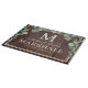 Rustikales dunkelbraunes Holz mit Eukalyptus-Grün-Schneidebrett mit den Paaren Vornamen, Nachname Monogramm, vollständiger Nachname und Hochzeitstermin, erhältlich in anpassbaren Vorlagen. Ein niedliches Grillgeschenk zum Thema Hochzeitsfeiern.