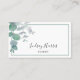 Die elegante Florist Business Card ist mit Eukalyptusgrün in sanften Grüntönen dekoriert. Einfach mit Ihrem Namen und Ihren Kontaktdaten anpassbar. Ändern Sie mithilfe des Entwurfstools die Textgröße, den Stil oder die Farbe. Wenn wir unsere Kunstwerke erstellen, werden Sie dieses exakte Bild von anderen Designern nicht finden. Original Wasserfarbe © Michele Davies.