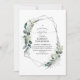 Geometrisches silbernes Rahmen und üppige Aquarellfarben botanische eukalyptusgrün Taufe Einladungen.