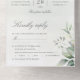 Schöne alles in einer Hochzeitseinladung mit Aquarell Eukalyptus und Gold Blätter.