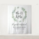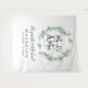 Eine elegante Foto-Kulisse für Ihre Hochzeit mit einem schlauen grünen Aquarellkranz aus Eukalyptusgrün, "Mr. & Mrs." in einer großen Schrift und einer Darstellung zweier Herzen verbunden. Personalisieren Sie mit Ihren Namen und Hochzeitstermin.