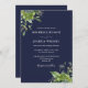 Eukalyptus Greenery Navy Blue Monogram Wedding Einladung