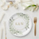 Diese schicke botanische Papierplatte mit zarter Aquarellpflanze kann mit Ihrer Monogramm personalisiert werden. Ideal für Hochzeiten, Brautpartys, Babyduschen, Taufe, Verlobungsfeiern, Jubiläumsfeiern und Geburtstagsfeiern. Entwickelt von Thisisnotme©