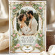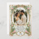 Stellen Sie Ihren Freunden und Ihrer Familie mit dieser eleganten und einzigartigen Einladung zur rett-the-date-Karte den ersten Blick auf Ihren besonderen Tag. Dieses Design wurde speziell entworfen, um Ihnen und Ihrem Lebensgefährten ein wertvolles Foto zu präsentieren, während Sie goldene Vintage Details mit rosa Blumen und üppigen Eukalyptuspflanzen vorstellen. Es ist ideal für alle romantischen, gärtnerischen, Vintagen und zeitlosen Hochzeitsthemen, denn es bietet eine Vintage und moderne Ästhetik, die Ihren besonderen Augenblick wunderbar ergänzt.