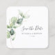 Erstellen Sie Ihre eigene, einzigartige und moderne Save the Date-Karte mit einem QR-Code mithilfe dieser Eukalyptus-Vorlage für eine üppige Vegetation.