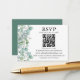 Die moderne Minimalistische Einfache Watercolor Greenery Wedding RSVP Card mit Ihrem QR-Code beinhaltet wunderschöne Eukalyptus-Blätter.