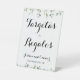 Un letrero de mesa de boda blanco y verde para tarjetas de dinero y regalos