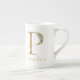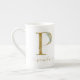 Diese moderne handgemalte botanische Aquarell Eukalyptusgrün auf Imitaten Goldbuchstabe P Knochen China Kaffee Tasse hat auch einen personalisierten Namen in einer passenden goldenen Hand geschrieben moderne Schrift unterhalb der ursprünglichen. Das ist ein schönes Geschenk für diese Frau in Ihrem Leben für jeden Anlass. Entworfen von Susan Coffey.