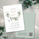 Elegante, alles-in-one-botanische Hochzeitsinspektion mit Aquarellen aus Salbei-grünem Eukalyptus-Grün, Lorbeer-Blätter und Goldakzenten, mit moderner, weicher grauer Typografie und Ihren Namen in einem stilvollen Goldskript. Auf der anderen Seite geben Sie Ihre Hochzeitswebsite-Adresse ein, um einen QR-Code für Ihre Gäste zu erstellen, um online zu scannen und zusätzliche Hochzeitsdetails wie Unterkünfte zu erhalten.