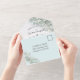 Sie werden die zeitlose Qualität dieses Aquarelldesigns mit Eukalyptus und Blätter in Salbei-Grün und staubblauem Blau Liebe finden. Dies ist eine großartige Einladung, die so einfach zu anpassen ist. Alle Elemente dieses Designs können auf den Anzug Ihres besonderen Anlasses umgestellt werden.