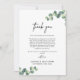 Die Rustikale Eukalyptus Greenery Wedding Dankeschön Card ist ein herzliches und elegantes Mittel für Paare, um sich nach der Feier bei den Gästen zu bedanken. Die Karte ist mit sanften Eukalyptus-Blätter und einem subtilen rustikalen Charme gestaltet und fügt sich perfekt in naturlich inspirierte oder Outdoor-Hochzeitsthemen ein. Es ermöglicht Neuvermählten, von ihren Hochzeitseinladungen bis zu ihren Dankeschön-Noten einen einheitlichen Look zu erhalten und so einen gepflegten und durchdachten Eindruck zu schaffen. Ideal für Paare, die Einfachheit und natürliche Schönheit schätzen, bietet diese Karte eine persönliche Touch, die Aufrichtigkeit und Wertschätzung in einem schön koordinierten Design widerspiegelt.