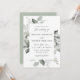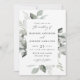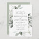 Elegante Eukalyptus Hochzeitseinladungen mit Ihren Details gerahmt durch eine Grenze von Eukalyptus und Blattwerk in hellen und dunkelgrünen Tönen. Die Eukalyptus Hochzeit Aquarell lädt zurück zu einem soliden grünen Hintergrund zeigen.