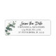 Dusty grüne Eukalyptus-Blätter verleihen diesen Hochzeitsparen die Date-Rücksendeadressen-Aufkleber einen natürlich eleganten Look. Eukalyptus ist mit seinen wunderschönen Blattformationen in Blau und Grün eine perfekte Illustration für Hochzeiten mit Blumenmuster oder Naturthemen, Hochzeiten im Freien und Winterhochzeiten im Süden. Der "Save the Date"-Text ist ein grafisches Element; Ihr Name und Ihr Adresstext können auf der Personalisierungsvorlage leicht überarbeitet werden.