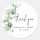 Eucalyptus Watercolor Wedding Dankeschön Klassischer Round Sticker, der Sie ganz einfach für Ihre besonderen Veranstaltungen, Brautpartys, Geburtstage und Abschluss anpassen können