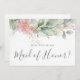 Schöne Trauzeugin-Vorschlagskarten mit rot-rosa Blumenfarbe Eukalyptus und goldenen Blätter.