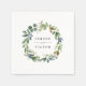 Diese eleganten Gartenservietten wurden für unsere Hochzeitskollektion Eucalytpus Grove entworfen und tragen Ihre Namen, umgeben von einem Kranz von Eukalyptus-Aquarellen-Blätter in sanften Pastelltönen, die von marineblauen Knospen begleitet werden.