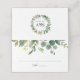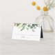 Die schicke botanische Platzkarte oder die Tischkarte zeichnen sich durch einen oberen Rand des grünen Eukalyptusblätters aus. Platz für den Namen und die Tischnummer der Gäste. Karten rückwärts, um einen passenden botanischen Kranz mit Ihren Initialen und Hochzeitstermin im Inneren zu zeigen. Entworfen, um unsere Eukalyptus Grove Hochzeit- und Veranstaltungskollektion zu ergänzen.
