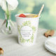 Hübsche botanische Aquarellgrün Eukalyptus verlasse fröhlich nach der Hochzeit oder nach der Hochzeitsfeier Papier Tassen. Ideal für eine botanische oder Gartenhochzeit mit Grünpflanzen oder nach der Hochzeit. Personalisieren Sie mit Ihrem eigenen Titel, Namen und Veranstaltungsdatum. © Original Aquarellmalerei Kunst und Design von Sarah Trett für www.mylittleedenweddings.com auf zazzle.