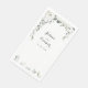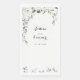 Eine dezente weiße Hochzeitsnapkin mit einer zart bemalten Aquarellfarbe aus weißen Tornfloralen und Eukalyptusgrün mit einem traditionellen handgeschriebenen Drehbuch in einer schwarzen Kalligraphie für Ihre Namen und Datum.