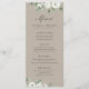 Moderne schicke Aquarellfarben, weiße, blühende Eukalyptusgrün und goldener Rahmen auf dem Hintergrund von Kraftpapier, mit trendiger Menüschrift, eleganten und stilvollen, großartigen Hochzeitsmenüs für rustikale Hochzeiten, botanische Hochzeiten und Hochzeiten am Strand das ganze Jahr über. Alle passenden Teile in der Sammlung anzeigen