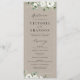 Moderne, schicke Aquarellfarben, weiße, blühende Eukalyptus-Pflanzen und goldener Rahmen auf dem Hintergrund von Kraftpapier, mit trendiger Schrift, eleganten und stilvollen, großartigen Hochzeitsprogrammen für rustikale Hochzeiten, botanische Hochzeiten und Strandhochzeiten das ganze Jahr über. Alle passenden Teile in der Sammlung anzeigen