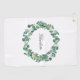 Weißer Hintergrund, mit einem eukalyptusgrünen Kranz dekoriert. Personalisieren und fügen Sie Ihren Namen, schwarz handgeschriebene Stil Skript.