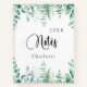 Ein eleganter weißer Hintergrund. Dekoriert mit Eukalyptusgrün und Waldfarnen. Fügen Sie ein Jahr und Ihren Namen hinzu. Text: Anmerkungen
