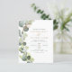 Feiern Sie Ihren besonderen Tag in natürlicher Eleganz mit unserer Eukalyptus Rustic Botanical Greenery Wedding Einladung. Inmitten der ruhigen Schönheit der Natur verströmt diese Einladung rustikalen Charme und botanischen Anmut und schafft so den perfekten Ton für Ihre Hochzeitsfeier. Mit viel Liebe zum Detail gestaltet, bietet die Einladung zarte Eukalyptus-Blätter und Akzente im Grünen und schafft so eine faszinierende Kulisse für Ihre Veranstaltungsdetails. Das rustikale Design wird durch eine ausgeklügelte Typografie ergänzt, was zu einer zeitlosen und modernen Einladung führt. Unsere hochqualitative Einladung, die die Maße misst, sorgt für Beständigkeit und Eleganz und macht sie zu einem hochgeschätzten Sake für Sie und Ihre Gäste. Ob Sie eine intime Gartenzeremonie planen oder eine große rustikale Affäre planen, diese Einladung lädt Liebende ein, in der Freude Ihrer Gewerkschaft inmitten der Natur zu erleben. Genießen Sie den zauberhaften Reiz von Eukalyptus und botanischer Vegetation mit unserer rustikalen Botanischen Grünen Hochzeitsfeier und beginnen Sie Ihre Reise in Stil und Eleganz für immer.