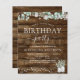 Budget Rustikales Land Outdoors auf dunklem Holz mit Grünpflanzen Eukalyptus und Baumwolle mit Jars auf String Light Spring, Sommer, Herbst oder Herbst Geburtstag Einladungen - beinhaltet schöne und elegante Schrift Typografie für die besondere Geburtstagsfeier.