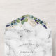 Marmorhintergrund mit Aquarell, Eukalyptusgrün und goldenen Blätter. Personalisieren und fügen Sie Ihre Namen, Monogramm und Hochzeitsdetails.