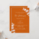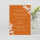 Orangefarbener Hintergrund, mit Eukalyptusstemmen dekoriert, mit Sprigs. Personalisieren und hinzufügen Sie Ihre Namen und die Details. Zurück: verbrannter oranger Hintergrund.