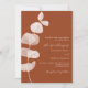 Dunkel verbrannter orangefarbener Hintergrund, mit einem großen Eukalyptusstamm geschmückt. Personalisieren und fügen Sie Ihre Namen und die Details.