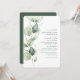 Entdecken Sie mit unserer Eukalyptus Greenery Succulent Floral Watercolor Wedding Einladung die Details Ihres besonderen Tages. Freuen Sie sich auf eine luxuriöse Mischung aus Eukalyptus-Grünpflanzen und moderner Typografie. Diese Hochzeitseinladung ist die perfekte Wahl für Paare, die ein elegantes und dennoch zeitgemäßes Design suchen. Diese Einladung vereint die exquisite Harmonie von Natur und modernem Design, delikat gefertigtes Blattwerk und üppige grüne Blätter mit eleganten Konturen. Die lebhaften Farbtöne der botanischen Elemente kontrastieren wunderschön mit dem weißen Hintergrund und bilden eine Einladung, die so visuell auffällig wie unvergesslich ist. Unsere Hochzeitseinladung kompromittiert weder im Stil noch im Detail. An der Vorderseite stehen Ihre Namen, Ihr Hochzeitstag und Ihr Veranstaltungsort in einem übersichtlichen, leicht lesbaren Schriftart.