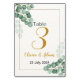 Eukalyptus-Hochzeit mit grüner Wasserfarbe Tischnummer