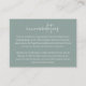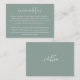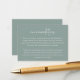 Personalisieren Sie diese kleine Umschließungskarte mit Ihren Hotelinformationen für Hochzeitsgäste. Unsere Eukalyptus-Farbbahn zeichnet sich durch eine weiße Schrift auf elegantem, coolem, grünen Hintergrund aus.