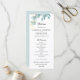 Dieses Hochzeitsprogramm, das sich perfekt für eine Sommerhochzeit eignet, zeigt eine schöne Aquarellgrafik von Ästen des Eukalyptus, die mit Goldbotanikalen akzentiert sind. Personalisieren Sie mit der Reihenfolge Ihrer Zeremonie und ein Dankeschön auf der Vorderseite und fügen Sie die Hochzeitsfeier auf der Rückseite.