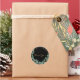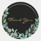 Green Watercolor Eukalyptus Blätter auf Goldkranz Dank dem Aufkleber über schwarzem Hintergrund, Dankeschön Sie Text kann leicht angepasst werden.