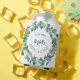 Weißer Hintergrund, schwarzer Text. Dekoriert mit einem grünen Eukalyptuskranz. Personalisieren und fügen Sie ein Datum, einen Namen.