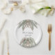 Dieses Design bietet rustikale Eukalyptus-Blätter. Die Eukalyptus-Vegetation wird durch eine elegante schwarze Typografie ergänzt. Die staubigen grünen Töne des Eukalyptusblattes schaffen ein rustikales Waldgarten-Ambiente. Elegantes Hochzeitspapierdesign mit modernen Elementen. Auch die passenden Hochzeitseinladungen und andere Schreibwaren sind verfügbar.
