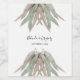 Dieses Design bietet rustikale Eukalyptus-Blätter. Die Eukalyptus-Vegetation wird durch eine elegante schwarze Typografie ergänzt. Die staubigen grünen Töne des Eukalyptusblattes schaffen ein rustikales Waldgarten-Ambiente. Elegantes Hochzeitsweindesign mit modernen Elementen. Auch die passenden Hochzeitseinladungen und andere Schreibwaren sind verfügbar.