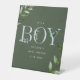 Eukalyptus Lettering Blue Boy Baby Dusche Willkomm Sockelschild