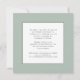Dieses Design ist eine beliebte Wahl bei Hochzeitseinladungen während der Coronavirus-Pandemie und wurde speziell für Live-Streaming Ihrer Hochzeitsfeier konzipiert. Freuen Sie sich auf eine moderne, quadratische Hochzeitseinladung mit subtiler Eleganz. Das Textlayout des serifenlosen Schriftartes fügt zusätzliche Verfeinerung hinzu, um Ihre Hochzeitsdetails schön zu vermitteln. Dieses Farbschema funktioniert gut für Hochzeiten in jeder Jahreszeit. Personalisieren Sie die Textvorlage sowohl auf der Vorder- als auch auf der Rückseite dieser Einladung in der leicht zu verwendenden Textvorlage. Sie können die Formulierung ändern, um Ihre persönlichen Vorlieben Anzug. Wenn Sie zusätzliche Textzeilen benötigen, wählen Sie am unteren Rand der Textvorlage die Option "Klicken Sie, um weitere Anpassungen vorzunehmen". Dadurch wird das Design für ein höheres Maß an Anpassung geöffnet.