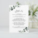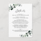 Eukalyptus Moderne Kalligrafie Hochzeitdetails Eintrittskarte.. Unsere Hochzeitskarte "Details" informiert Ihre Gäste über die Informationen, die sie für die Teilnahme an Ihrer Hochzeit benötigen, inklusive Informationen über die Rezeption, Unterkunft, RSVP und wo Sie Ihr Geschenkregister finden. Sie informiert Sie über unsere Eukalyptus Botanical Wedding Suite (auf weißem Hintergrund). Unsere dedizierte Detailkarte zeigt smaragdfarbene Eukalyptus-Blätter, die Ihre schriftlichen Informationen auf einem klassischen weißen Hintergrund abgrenzen. Chic moderne Kalligrafie zeigt den Text für "Details". Alle anderen Texte können auf der Personalisierungsvorlage leicht überarbeitet werden.