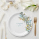 Eukalyptus in Aquarellfarben, Gelb und Türkis. Teller zum Hochzeitspapier. Elegante Farben. Floral. Namen.