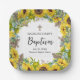 Schöne, fröhliche Sonnenblumen, Eukalyptus und Blätter aus Palmen schaffen ein Blumenbild für Ihre Taufe Teller. Ein rustikales Holzkreuz an der Spitze trägt zum gesegneten Anlass bei. Der Name, die Taufe, das Datum und die Position werden ebenfalls auf dem Teller angezeigt. Diese Papiertafel ist perfekt für jede Spätsommer- oder Herbsttaufe.