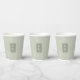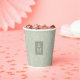 Mit einer Farbpalette von Elfenbein bis Federgrün und Dunkelmoos verfügt diese Hochzeitskollektion über einen handgeschriebenen Script-Schriftart und Eukalyptus-Laub-Akzente, um diese wunderbare moderne Touch hinzuzufügen. Der hier abgebildete Papierbecher hat alles oben mit einem auffallenden Eukalyptusblattmuster und einem rechteckigen, weiß getrimmten Rahmen, um Ihre Initialen und das Hochzeitstermin zu halten. Durchsuchen Sie ID901, um weitere Farbauswahl und koordinierende Stücke für diese einzigartige Hochzeitskollektion zu sehen.