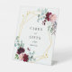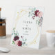 Zeigen Sie Ihren Gästen den Geschenke- und Kartenbereich mit diesem Tischschild mit bordeauxrotem, rosa und grünem eukalyptus-Blumenmuster. Mit einem geometrischen Rahmen aus Imitaten mit eleganter Schriftzeichen. Ideal für Hochzeitsfeiern, Hochzeitsfeiern, Polterabende und andere Events! Ändern Sie die Text-, Schriftart- und Hintergrundfarbe, um zu Ihrem Event zu passen!
