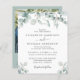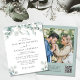 Elegante, preisgünstige All-in-One-Hochzeitseinladung mit Aquarellen aus Weiß-Eukalyptusgrün, stilvollem Drehbuch und weicher grauer Typografie. Auf der anderen Seite, fügen Sie Ihr Foto und geben Sie Ihre Website-Adresse Hochzeit zu erstellen, einen QR-Code für Ihre Gäste, um UAWG online scannen und erhalten Sie zusätzliche Hochzeitsdetails wie Anleitungen und Unterkünfte.