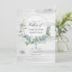 Wald Aquarell Eukalyptus grün Hochzeitseinladung mit goldenem geometrischem Rahmen, individuell auf Ihre Event-Spezifikationen. Ideal für jede Art von Thema oder Gartenhochzeit. Der QR-Code auf der Rückseite führt zu Ihrer Hochzeitsstelle, wo die Menschen mehr und uAwg lernen können.